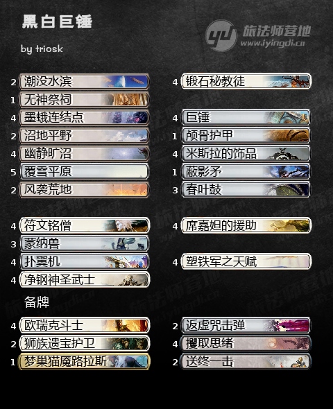 沾黑后备牌可以用和路拉斯相性良好的返虚咒击弹,当然还有必需品送终一击和攫取思绪,满编欧瑞克斗士,其他的位置有人用了穿髓金针有人用了狮族遗宝护卫。说起来这备牌三个金针到底是为了扎啥呢...废品泰坦?内战扎锤子也防不住援助啊,看来还是我想象力比较匮乏,我知道肯定有很多我想不到的目标,但这些目标是否值得用这么多卡位去针对我就不敢妄言了。