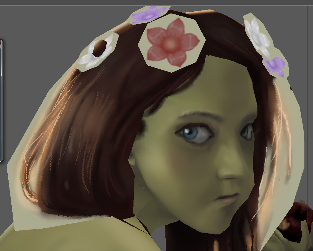 经我观察,昆特牌闪卡的光效阴影应该都是直接绘制在贴图上的,所以我先将模型的起始动作摆好方便绘制贴图,然后就可以开始画贴图啦。摆好poss,戴上假发,贴上贴图后效果还不错。
