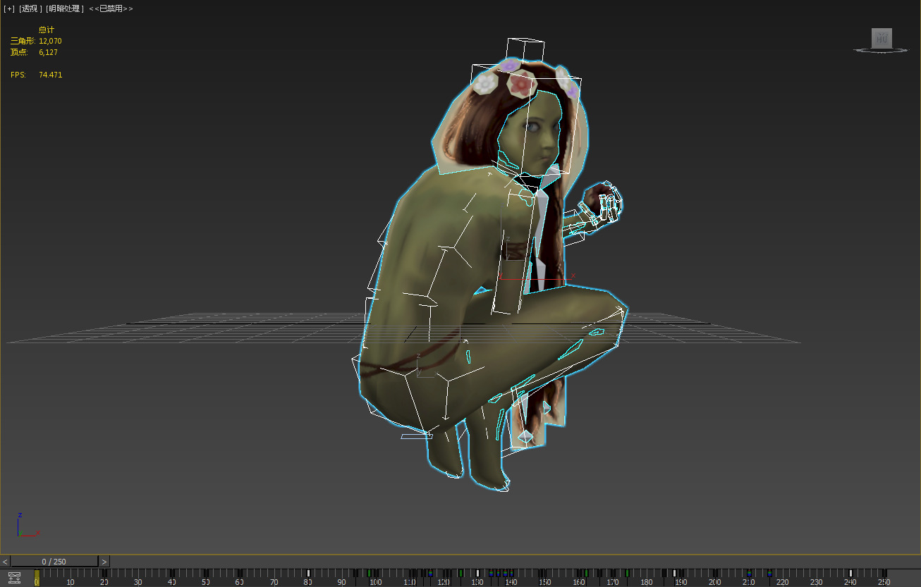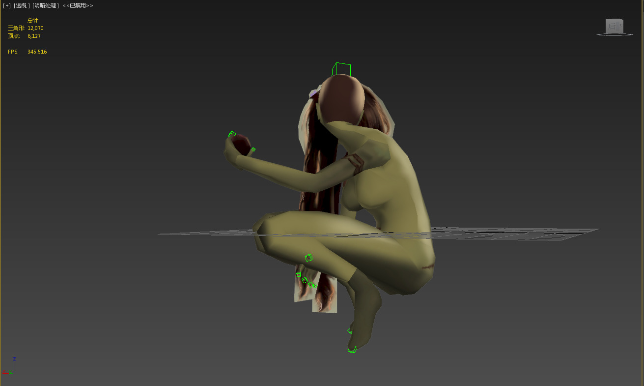 由于视角固定,看不见的面都没画贴图,不知道是我身体比例的问题还是什么原因,动作怎么调都有点畸形,只能尽量接近原画