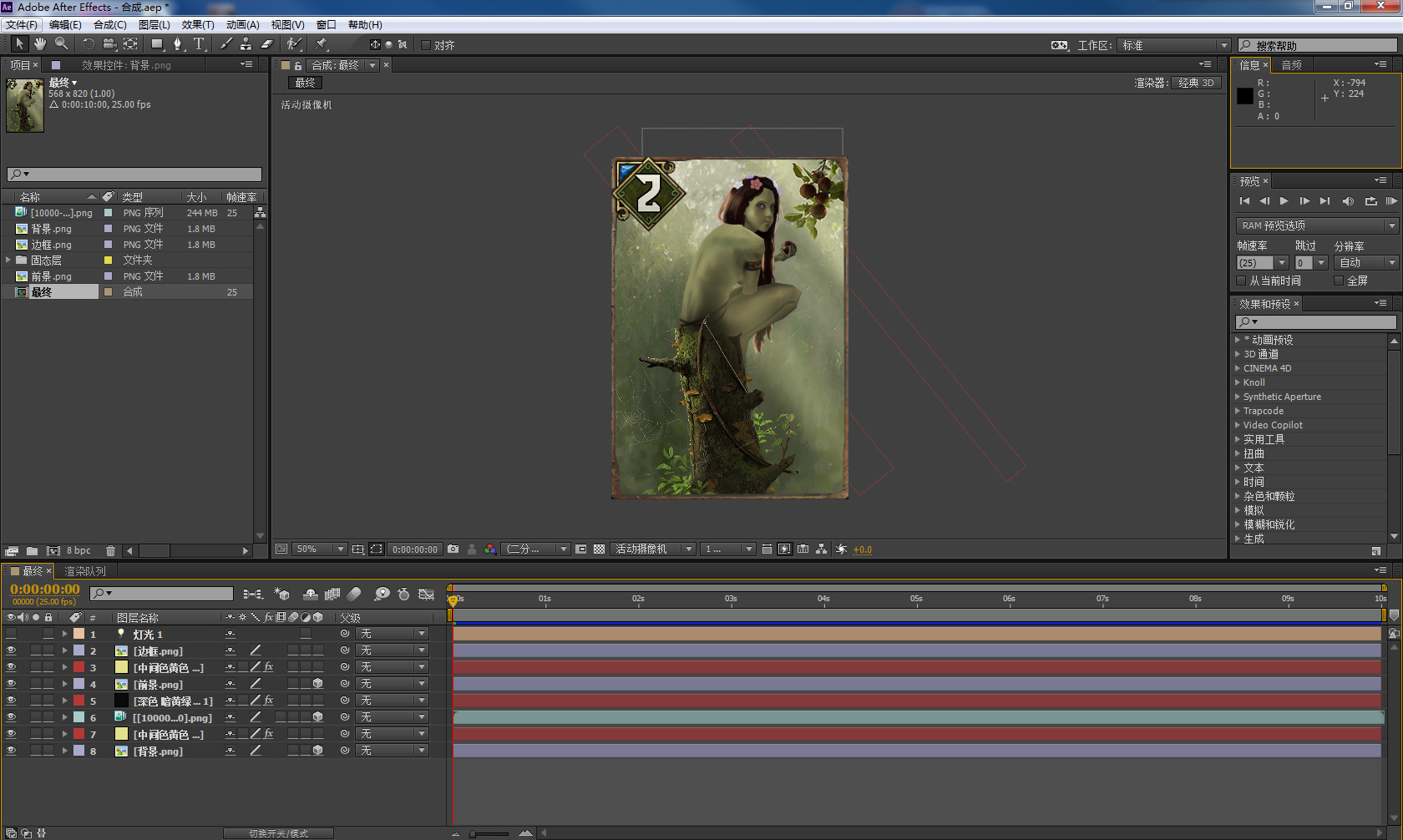 导出动画后就剩最后一步啦!将所有准备好的素材合成起来,再加点特效,这方面就不是我擅长的了,简单做了些效果