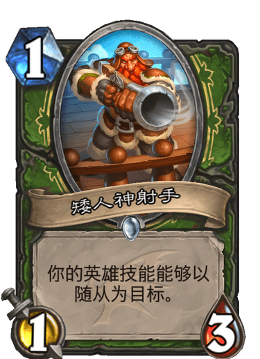 特点1:30张卡除了几张站场随从之外都是可以几乎稳定给予对手伤害的卡牌。决定卡组核心思路1:“牌打光,人打死”通过每局能够抽到的12张左右的牌配合射箭技能凑够30伤害取胜。