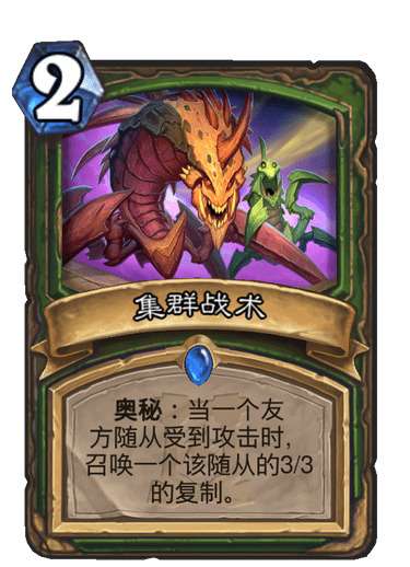 作为卡组中唯一的橙卡可能是一些玩家想玩这个卡组唯一缺的卡,这张卡使用起来由于我们是进攻方所以经常可以打出超越4费的价值,但是没有这张卡问题也不大,毕竟卡组平均每局抽到的卡牌不多换一张对胜率影响不大(建议换成能打的3、4费随从或者一个抽牌的卡)