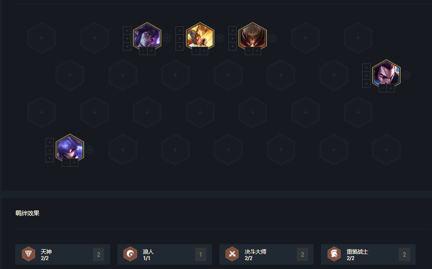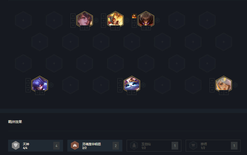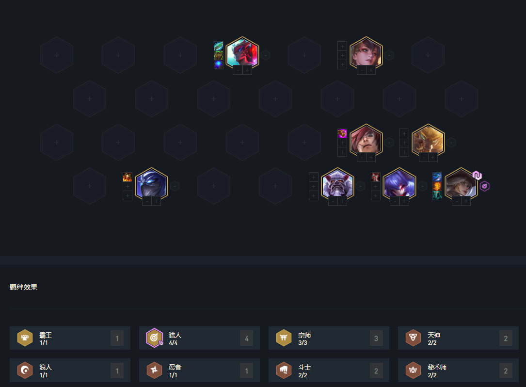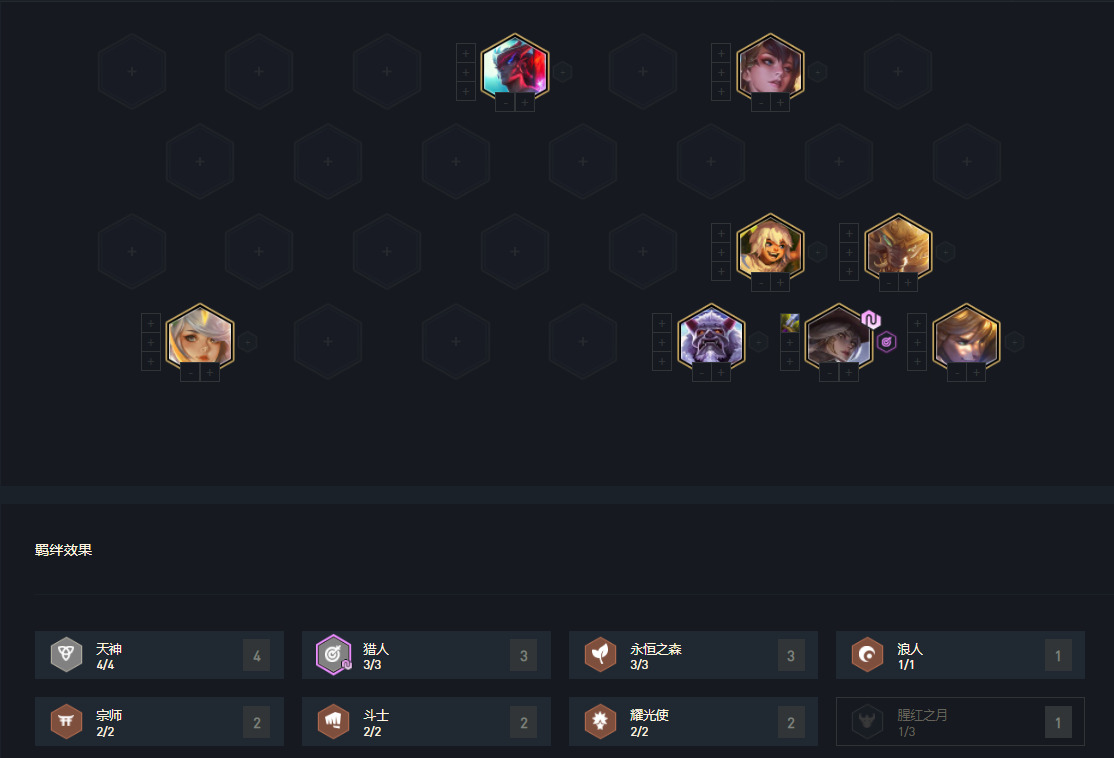 如果其他天选,可不改变阵容,如开篇阵容图就好,比传统猎宗收益更高一些。阵容3-4费卡全2星且有永恩,基本就可以吃分,5费卡有2星就能冲击吃鸡。