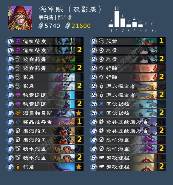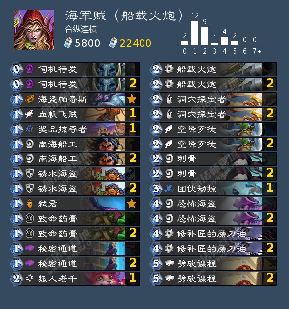 这里给大家提供了一套来自合纵连横狂野环境报的船载火炮海军贼,作为参考。本文主要介绍第一套卡组。