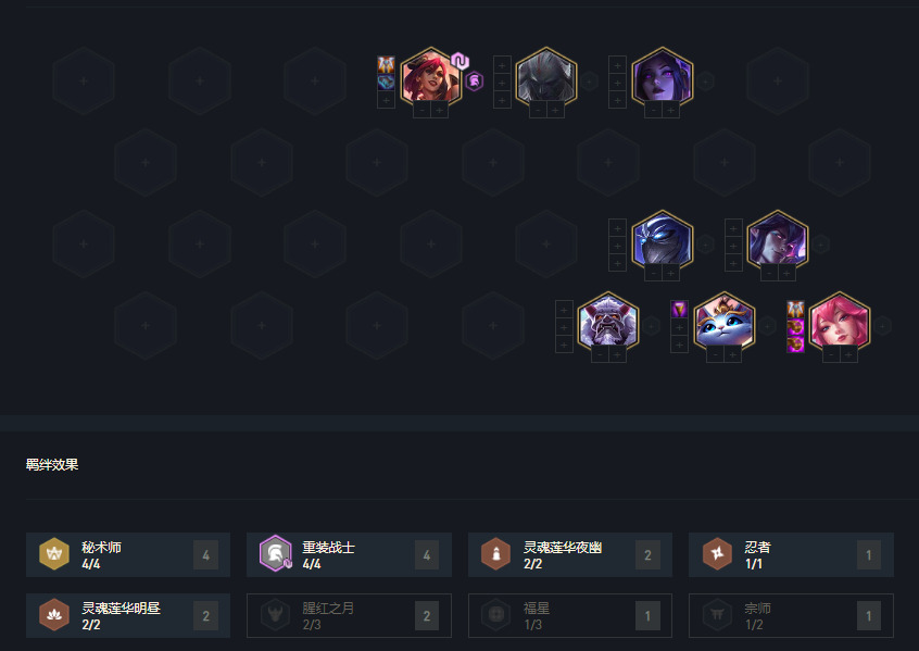 本周统计中重秘阵容前三场第一,成为版本最强烂分王,赌狗阵容变少让重秘的过度变得容易,更容易成型而成型后的重秘不虚版本大部分阵容,重秘阵容最强的就是阵容控制链与狐狸的一个技能清屏,狐狸与凯隐的选择更多是看装备。
