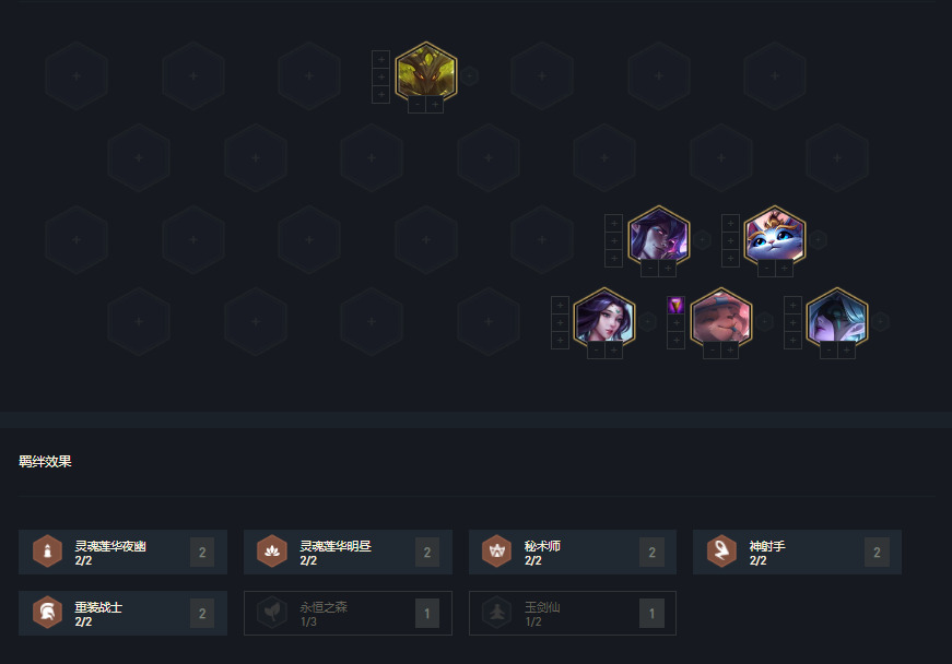 阵容的主C是提莫与风女,但更关键的就是圣杯这件装备,双圣杯给风女、提莫、烬增加70%法强,让3枚棋子技能得到超高强化: