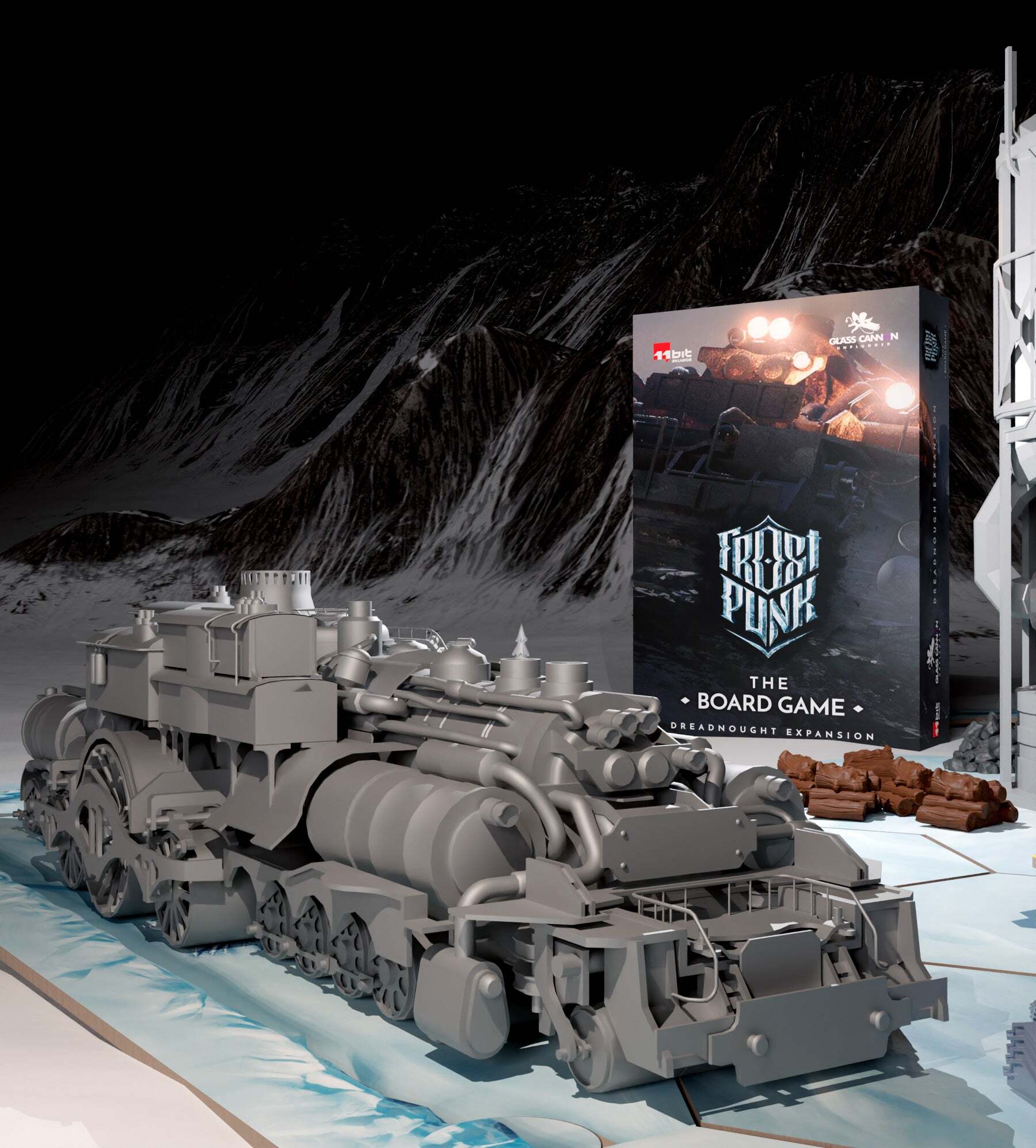 当然,如果你的钱包允许的话,还有很多方式能让游戏进一步更具代入感,比如KS解锁的大量的模型升级配件,会让桌面上真的能建立起一个如同游戏中一样的立体城市。更别提说还有一个专门的模型配件扩展,进一步为你的城市建设补充了83个建筑模型,顺手还把工人、工程师、儿童和机器人都升级成了模型。假如这些你还觉得不过瘾,那么资源配件扩展可以把游戏中的树木、木头、煤炭、钢铁和蒸汽核心都变成模型。假如,我是说假如,你是个《冰汽朋克》的深度铁粉,还想再进一步地立体化这个世界,那最终这个190X70X50mm的巨大陆上无畏舰模型,绝对能满足你的需求!