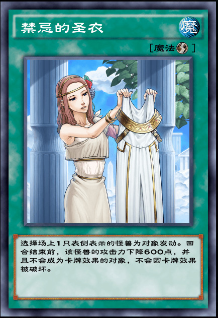 万金油和全能石的代表。在频繁需要战斗除去的环境和卡组里,下降600点攻击力就很有可以到达安全线,而面对一些效果破坏的卡片,速攻魔法的特性可以很好的保护自己的怪兽不被破坏,需要根据环境的趋势来决定投入数量的卡片。