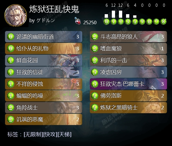 狂乱快鬼十分依赖第3回合瞬召佛劳洛斯,因此这套牌投入了讥讽的恶魔,以提升做到这点的概率。