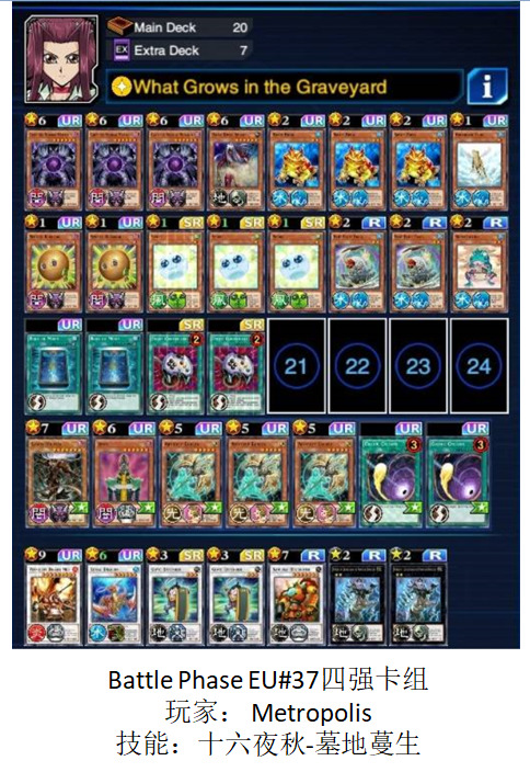 另外同样是Battle Phase EU#37的比赛中,Metropolis使用邪帝娃卡组(其中内含孢子体系)拿到了四强,在当下环境中能以这套卡组杀入四强,真的是相当可以了。