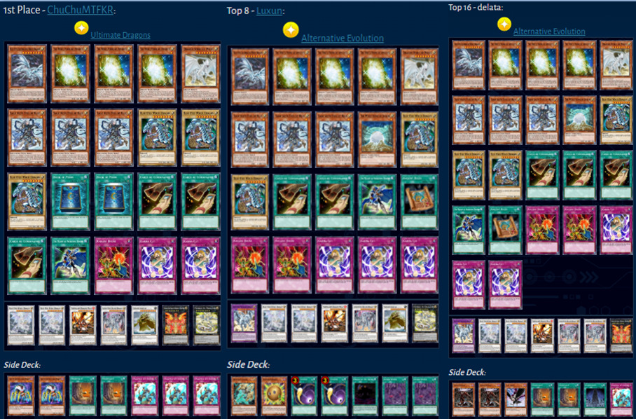 当下白龙卡组主要分为两类,其最大的区别在于是否携带远古规则,早在去年12月的Meta Weekly #154比赛上,lord就使用携带两张远古规则的白龙卡组拿到了16强,接着在当周的周五举行的Meta Freekly #21比赛中,Ristar使用携带两张远古规则的白龙卡组拿到Meta Freekly #21的冠军,使得携带远古规则的白龙卡组重新进入人们的视野,在调和的过牌情况下,使得远古规则为青眼卡组增添了进一步控场的可能(只不过在当时白龙卡组的成绩属实一般),加上第32主要扩展包中圣刻神龙-九神柱的出现,远古规则已经成为白龙卡组不得不考虑的一张卡位。