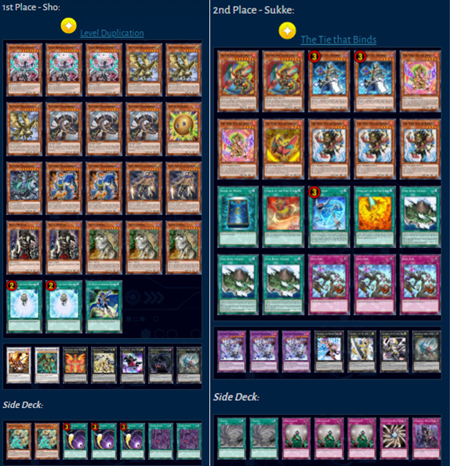 比赛最大的特点是,黑羽卡组与白龙卡组并列参赛率第二高均为11套,其中比赛的亚军被一套电子龙卡组获得。