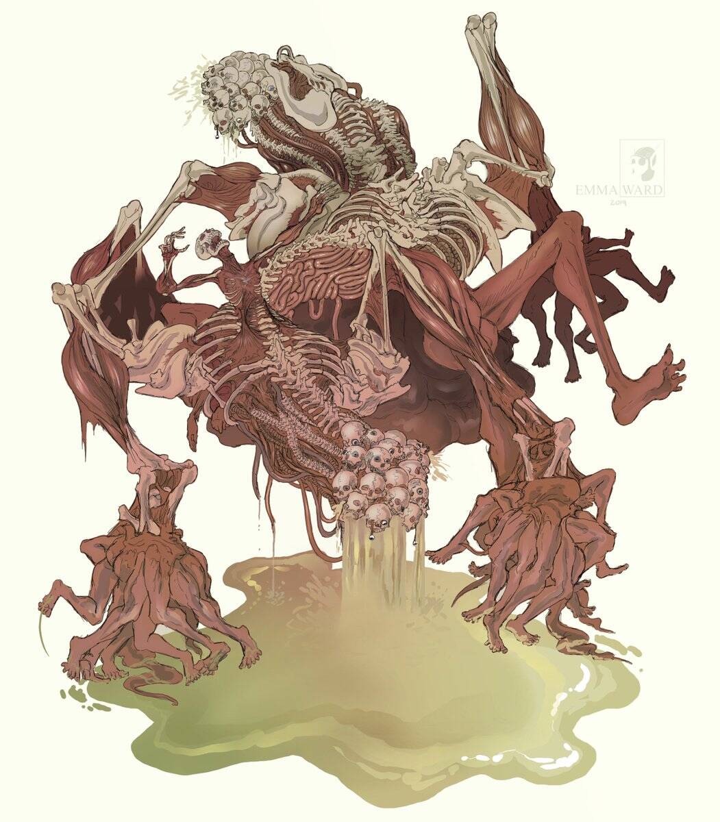 最糟糕的是,这些怪物似乎都在朝着某种十分邪恶且亵渎的方向变异着。它们或长出许多古怪的附肢,或长出各种带着许多格栅状的触手,又或是在极其不适当的部位长出充满血丝的眼睛……