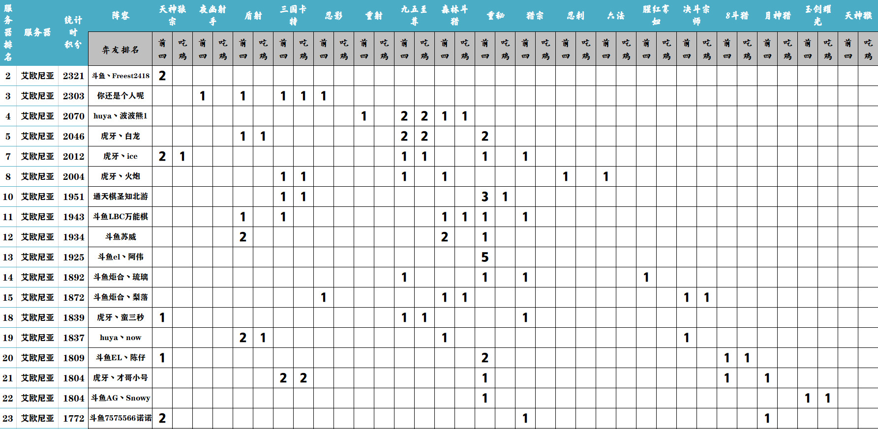 · 只统计艾欧尼亚服务器排名前30名玩家,无对局场次,或不够5场排位赛,名次顺延。