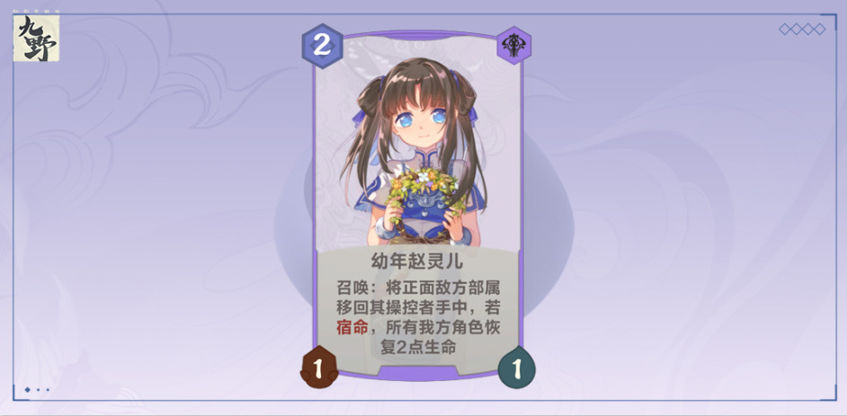 此卡牌召唤即可退回一名正面敌方部署,触发宿命效果还可给全场加血,只要预判靠谱,运气在线,我们的小灵儿,你值得拥有!但是灵儿命还是有点脆的,为了避免当年悲剧重现,还是多用几个血厚小伙挡挡攻击吧~(血厚小伙:?)