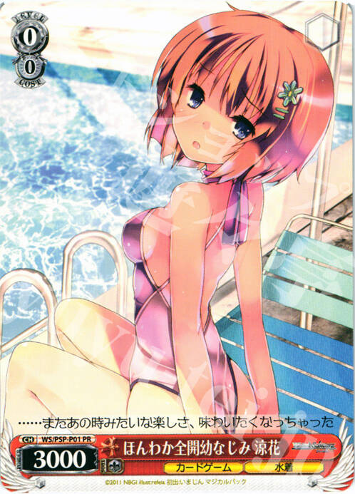 psp版ws游戏的女主之一,ws最古的(好像也是唯一的)主机游戏,版权参战作有fate系列、魔禁超炮系列、超时空要塞F、凉宫春日的忧郁、侦探歌剧、Angel beat+库特Wafter、偶像大师、奈叶 ,不过印象最深的是这东西有以nbgi的名义参战的作品,NBGI以发行商身份有一些特殊卡,作品涵盖了深渊传说、挖地小子、德鲁雅加之塔等 ,毕竟游戏是nbgi做的(然而传说现在也没有实卡参战。。。。。。)我记得鸟神对这个东西的评价是,总会误操作,误操作是在确定一些效果的时候,容易下意识地按到确定键直接就发动了,最典型的就是三费演 ,电脑ai在板子没有对手大的情况下,无论对手的角色是几级都会毫不犹豫的侧击。。。。。。