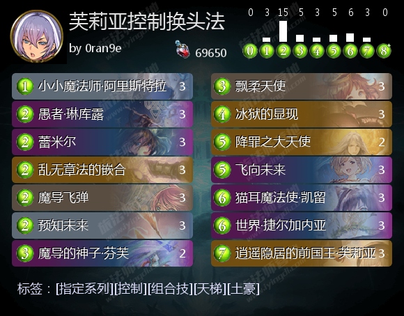 逍遥隐居的前国王·芙莉亚能通过进化高效返场、回血并护脸,为达成组合技争取时间。芙莉亚还能配合魔导的神子·芬芙在后期制造大场面,帮助这套牌站场取胜。