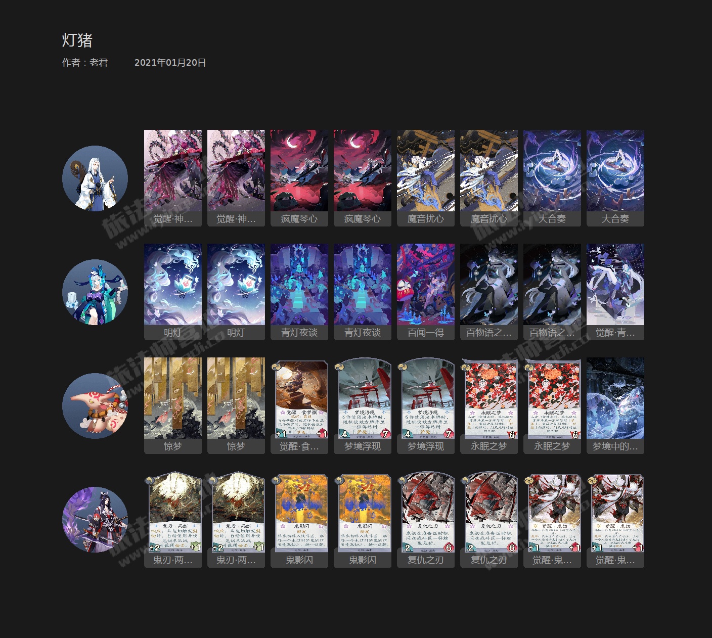 青灯夜谈、复仇之刃、神乐歌、觉醒食梦貘、两断、梦境浮现、百物语之火。
