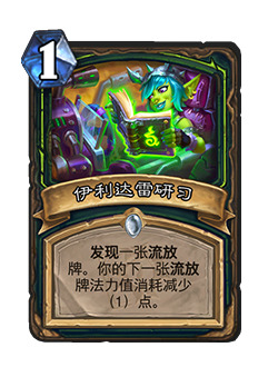 贤菜:因为中立没有流放,这张牌一定是发现恶魔猎手的职业牌,我个人觉得研习这个机制就非常厉害,这张卡也一样,属于恶魔猎手必带的牌。