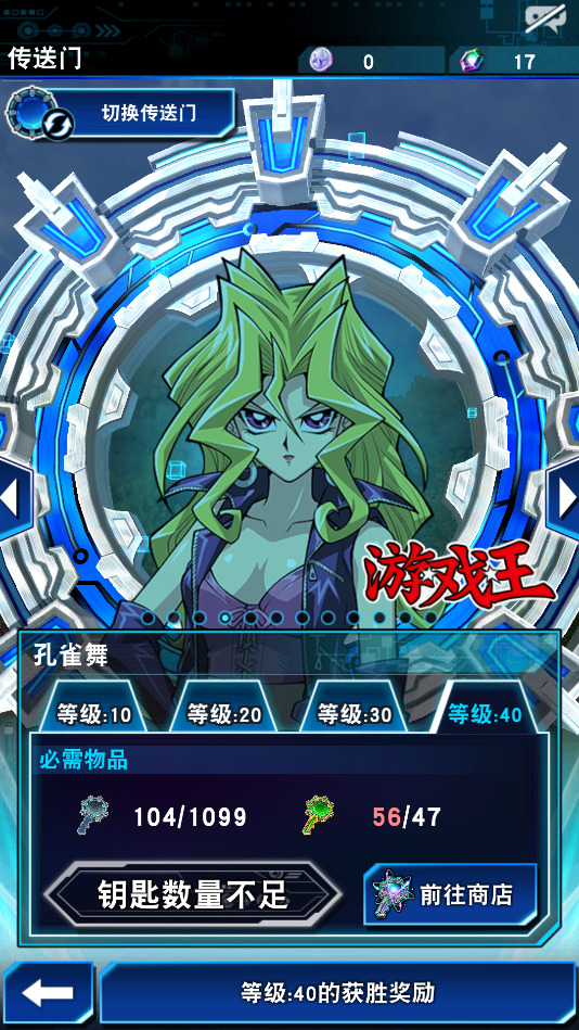 孔雀舞升级奖励卡中,我们需要伊塔库亚的飓风(25级解锁),两张亚马逊的意志(33级,38级解锁),一张亚马逊的女王(40级解锁)。建议大家去开3倍刷10级门,如果你抽了究极龙大包,可以考虑使用拖吊小熊猫X2+任意高星怪兽X18+抽卡预感低星去刷10级门,刷起来非常无脑,完全不用思考,能在这个枯燥且漫长的过程中为你省下一些精力。孔雀舞到40以后立即切换城之内,因为我们还需要把这个货也刷到38级拿到两张苍炎的剑士(我自己是实在刷不动了,硬着头皮拿不完整的牌去打的rank)。