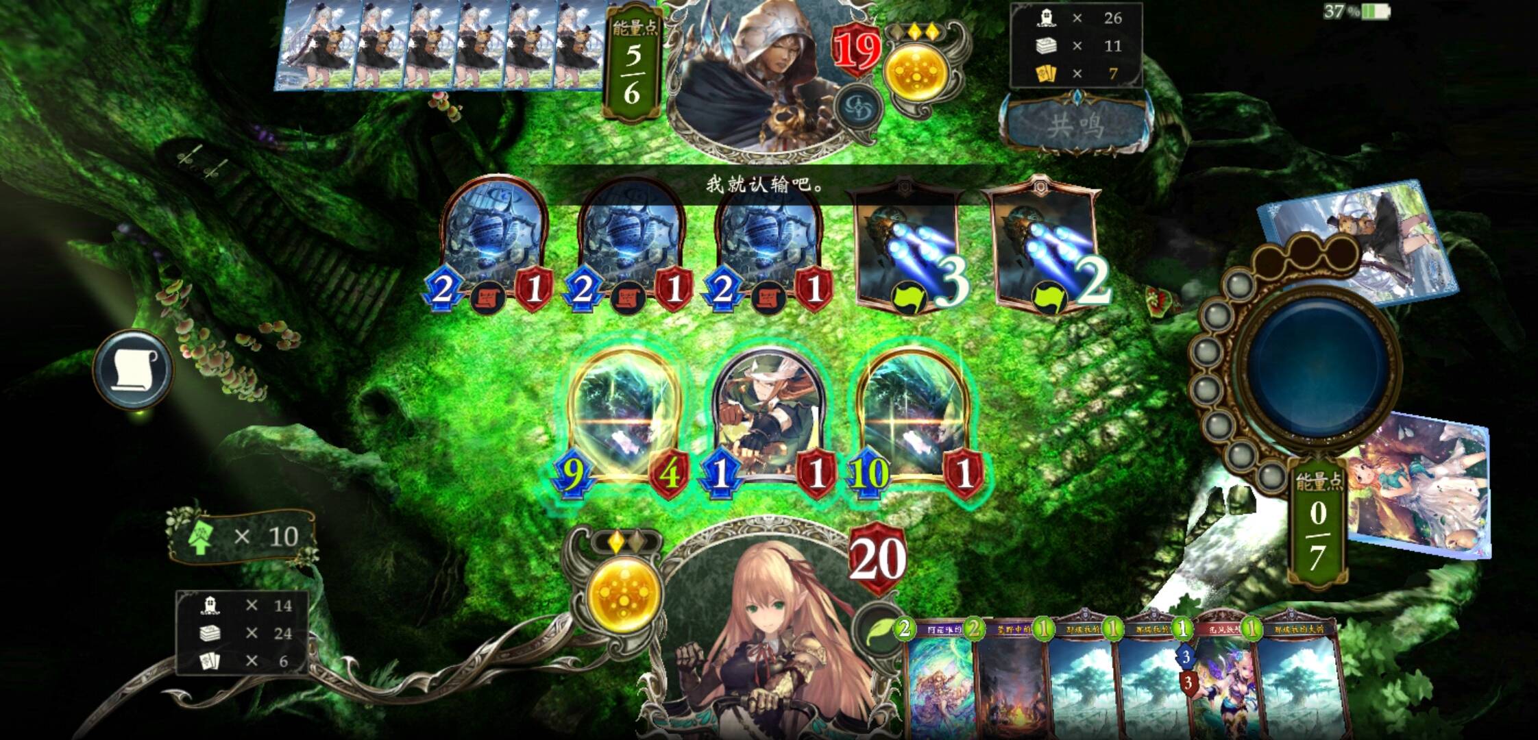 佐伊庭院龙和达贡龙虽然对局时偶有翻车,不过赢多输少,总体是很好对付的。这两种龙前期大体相同,都比较空虚,往往可以大量压制对手的血量来方便后续的斩杀,庭院也会影响我们的费用,所以需要视情况在进化回合压下结晶的风六道换来更多的减费牌,如果能换到3费的牛仔那基本这局很轻松就能拿下了。这也是为数不多可以考虑迅风精灵本体作为斩杀的对局,不过也要小心森林之狼和牧地巨人卡激奏。同时这个对局以回手替虫计算费用时是不用额外+1的。