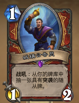 (城镇公告员的插画从狼人变成了人类……设计师Celestalon解释说这个插画版本的城镇公告员本该用于其他地方,根据经验来看用得到异画版可收藏卡的基本就是英雄之书了。)