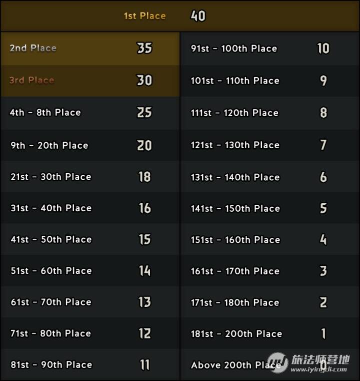 自2021年1月的天梯赛季起,至2020年9月,取得赛季末职业天梯前200名的玩家,将会根据名次获得皇冠点数。每个名次所获取的具体皇冠点数如下图所示。