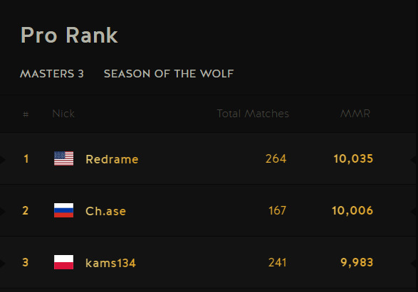 虽然你的当前总体和阵营MMR会根据比赛胜负而不断变化,但你的排名将会依据该赛季的最高MMR来决定。举例来说,如果你排名第三,曾经在该赛季达到过8200MMR,然后输了一些比赛,导致你的整体MMR大幅下降。但你依然会停留在第三名,直到赛季结束,除非其它选手超过了你的8200MMR。