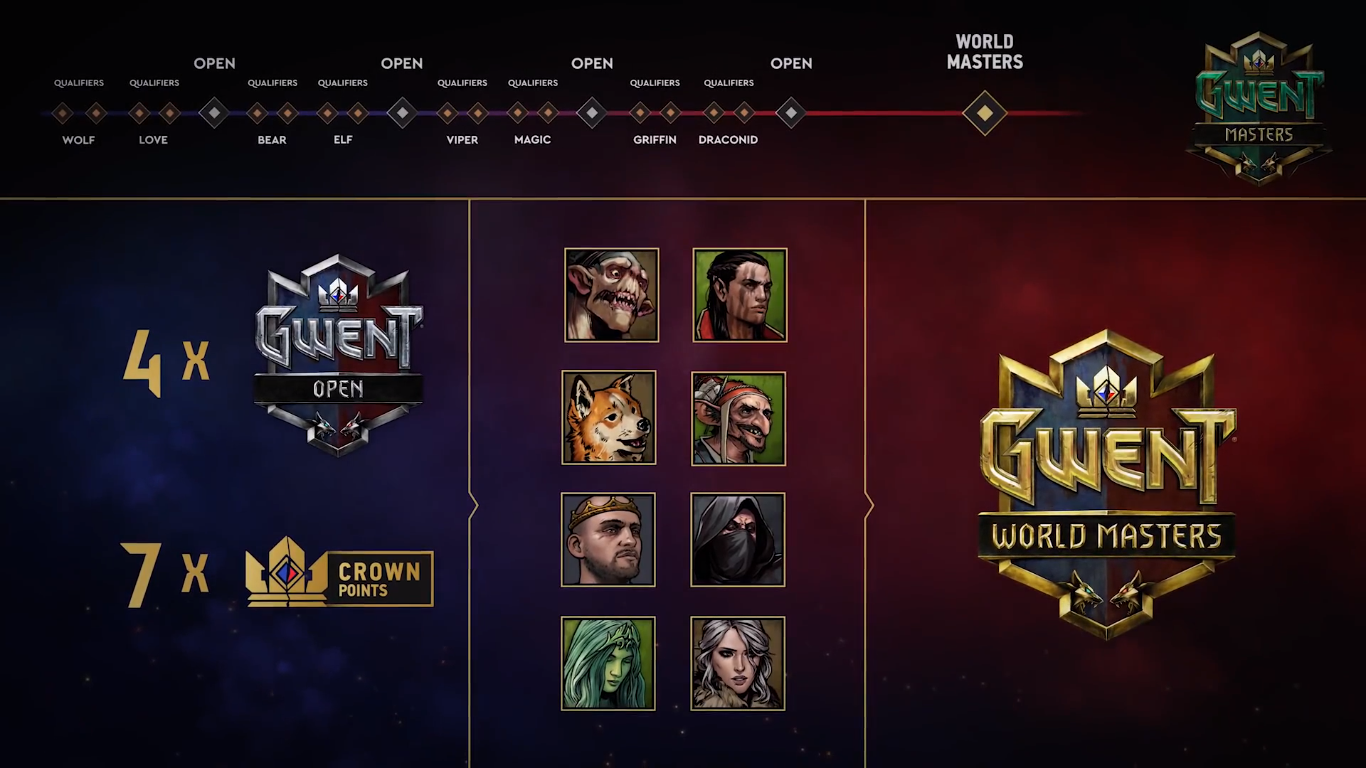 下面要说明本赛季大师赛的特别改动,皇冠点数现在可以从线上预选赛中获得!此前线上预选赛的体验苦乐参半——选手们经过数小时高强度的昆特牌比赛后,只有2名选手被称为获胜者,赢得通往公开赛的门票,而其他选手却一无所获。很多选手都跟我们表达过这一问题,因此我们决定给每届预选赛前四名的选手提供皇冠点数。