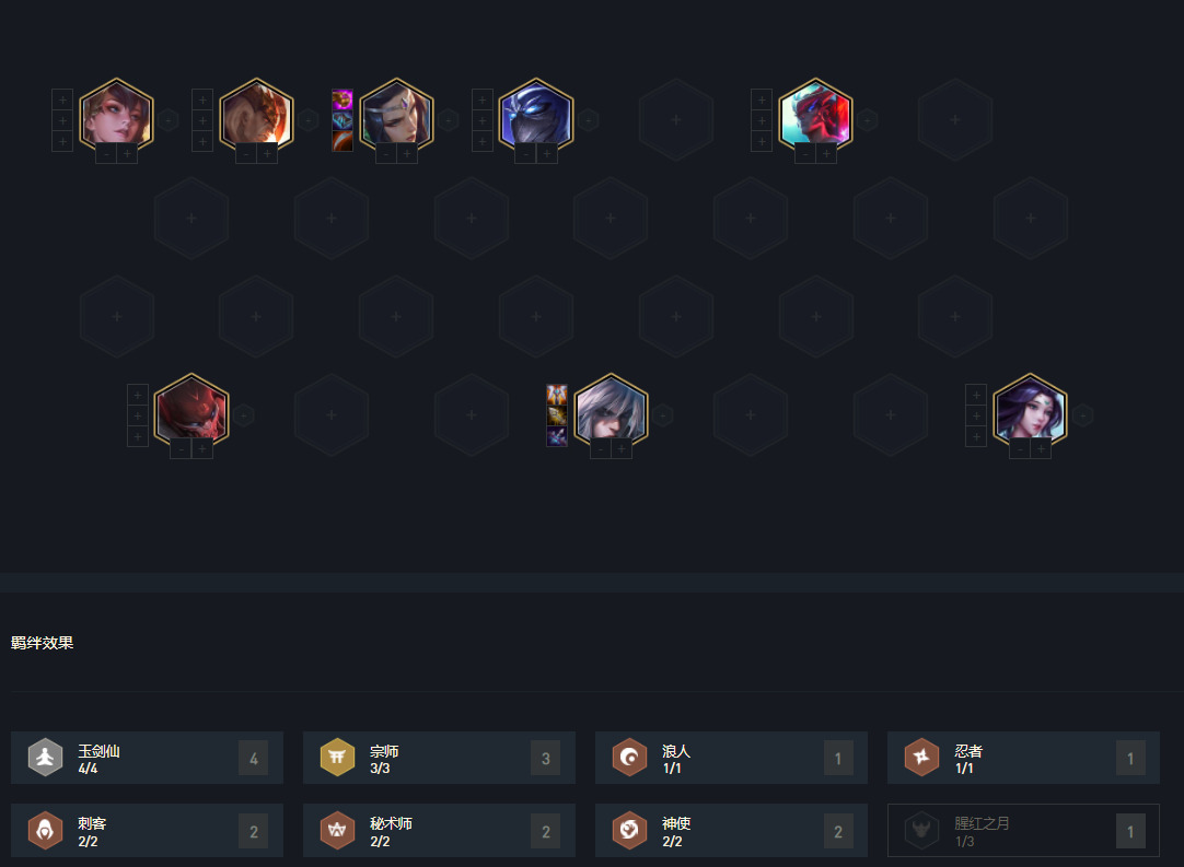 此套阵容大家都会很熟悉,就是上版本的玉剑耀光宗刺,但这版本耀光羁绊取消了,但把耀光羁绊给予到莫甘娜技能里了。
