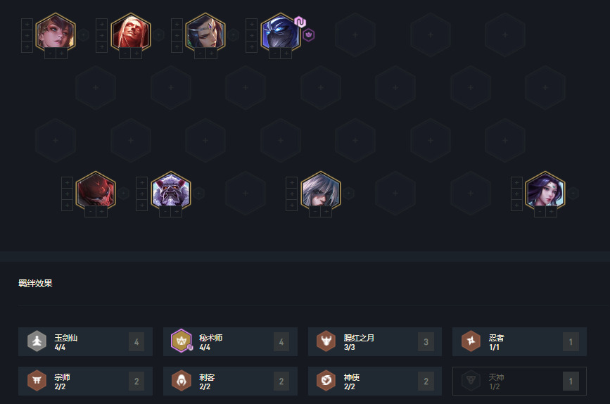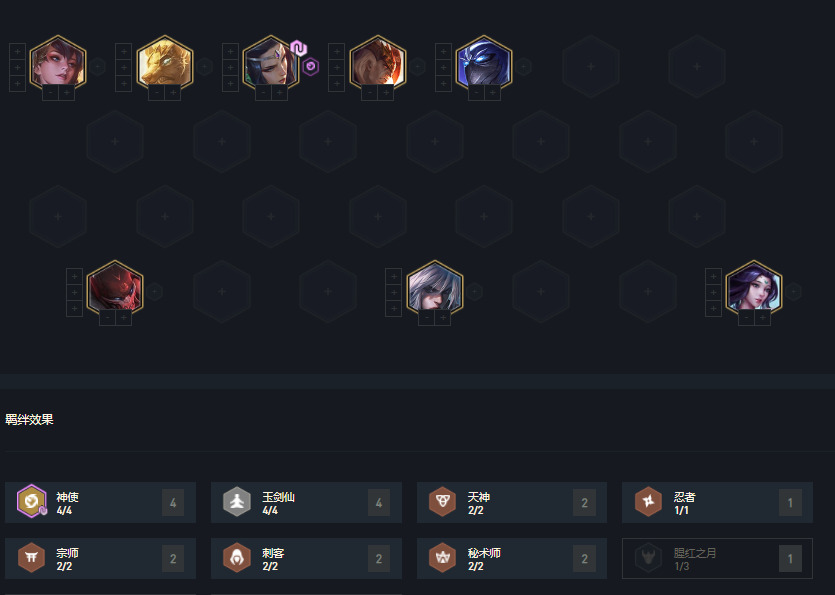 如果是莫甘娜的神使天选,我们就可以考虑上4神使+4玉剑下掉永恩。这里需要注意下,玩4神使+4玉剑阵容,不要选择其他神使天选,前中期太过托节奏(吸血鬼天选可考虑,但是吸血鬼追三星,是另一套阵容了不在是莫甘娜、男刀主C而变成吸血鬼主C出装:帽子/法爆、反甲、龙牙)