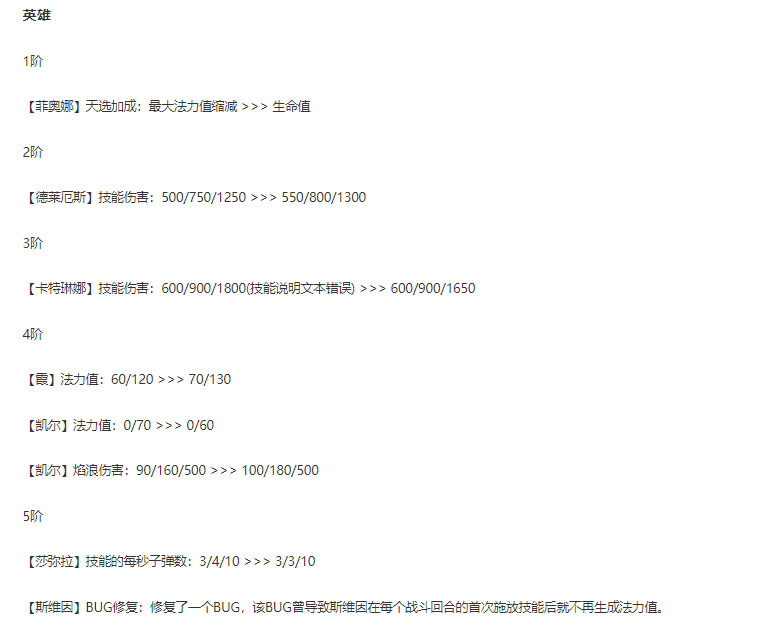 三国羁绊削弱:削弱的只有6三国,削弱了50点生命值与5点法强。6三国是我们最常用的三国羁绊,此次削弱满层6三国算下来削弱了总共削弱了75生命值与7.5的法术强度,只能算的上是小削弱,且这版本三国体系内豹女的出场率极高,削弱血量后2星豹女血量不到1750,不在吃巨杀了。