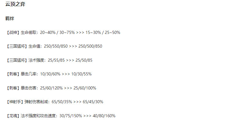 战神羁绊削弱:吸血能力遭到削弱,战神棋子门的续航能力大大削弱,现在不会出身上有重伤状态还能大幅度回血的情况了。