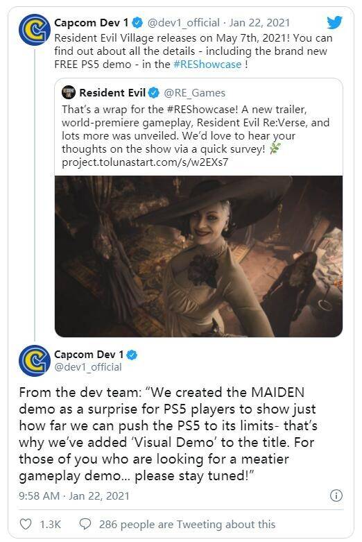 在1月22日一早的直播活动上,Capcom正式公开了《生化危机8》的大量内容,并且确定了游戏将于2021年5月7日正式发售。PS5玩家也对突如其来的试玩感到意外。但其他主流平台的玩家可能略感失望,毕竟这次的试玩版只有PS5版,不过官方表示随后还会有新的试玩推出。