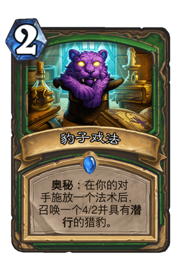 偶数猎:起手留嘲讽随从回血,尽量不让对方的怪摸脸。这套卡组最大的压制力就是在于其奥秘,每回合射箭也会抢掉不少血量。对阵偶数猎时,一旦对手头上有两个奥秘,就用姐夫找照明弹来清除。如果对手豹子戏法还没触发时一定不要使用法术,4/2的怪走脸还是挺疼的,等到能够处理豹子的时候再使用法术。