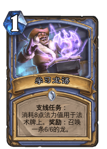 同样是两点法强的碧蓝龙探险者确实是优先级很低的选择,首先费用过高,其次身材差,最后几乎很难发现不卡手的龙,即使是低费龙,也可能没有机会下。但是,如果我们本身面对的就是慢速职业,在手牌不好的情况下,何不尝试拿一条龙站场,缓解下压力呢?因为在面对慢速时,即使我们晚一回合,通常也不会怎么样(牧师和术士除外)。而且也可能发现深蓝系咒师,法师的一费法术大部分都进了我们的构筑(就有它的实用之处),即便是元素盟军和学习龙语,也能成为加基森刷牌的原料,甚至可能能收获66龙站场这样的意外之喜。