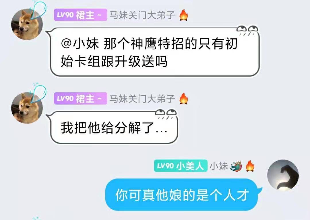 营地的小伙伴们大家好。我是幼儿园小妹,之前给大家介绍的刷分卡组用起来还满意么?我已经收到好多配件开包沉底和起手抓不到少女的朋友发来的亲切问候了呢。在研究完刷分卡组之后,我就想着肝孔雀舞的等级组亚马逊打天梯,结果亚马逊卡组还没齐,就用神鹰女郎打到决斗王了…这期间一次内战也没打过,其他文章中的天梯卡组也没有神鹰的影子。所以今天为大家带来这套虽然冷门,但一样可以上王神鹰女郎卡组构筑攻略。和上次一样,上卡组之前先介绍构筑思路。