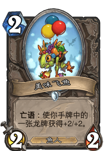 这张卡的优点是本身作为3费龙,可以被2费鱼人的亡语抽到手上,这样可以避免找不到3费随从。但缺点过于明显,首先是2费鱼不一定能抽到这张龙,其次是这张卡的身材比双盾优等生差太多,太亏节奏了。