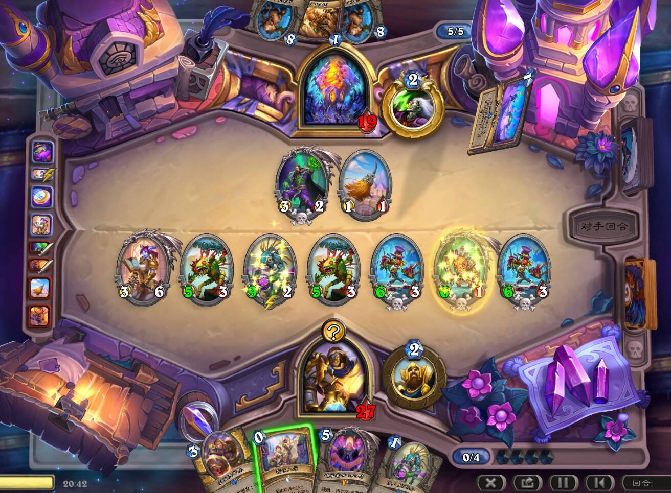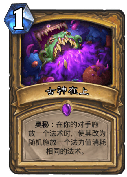 现在的德鲁伊以宇宙德和铺场德。对宇宙德我们是均势到小优对局。宇宙德的群解就一个姐夫,而我们给的压力是源源不断的,对面很有可能解不过来。倘若战局拖到后期,对面可能会用被优胜劣汰buff过的嘲讽怪来护脸,这时候别忘了鱼竿可以给剧毒鱼人,开赛也可以找鱼人领军来加攻过墙。铺场德我遇到的比较少,这里我只提供一个思路,由于对面是用法术来铺场,因此古神在上就可以直接让对面掉节奏,古神在上nb!