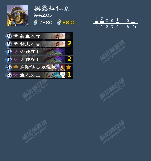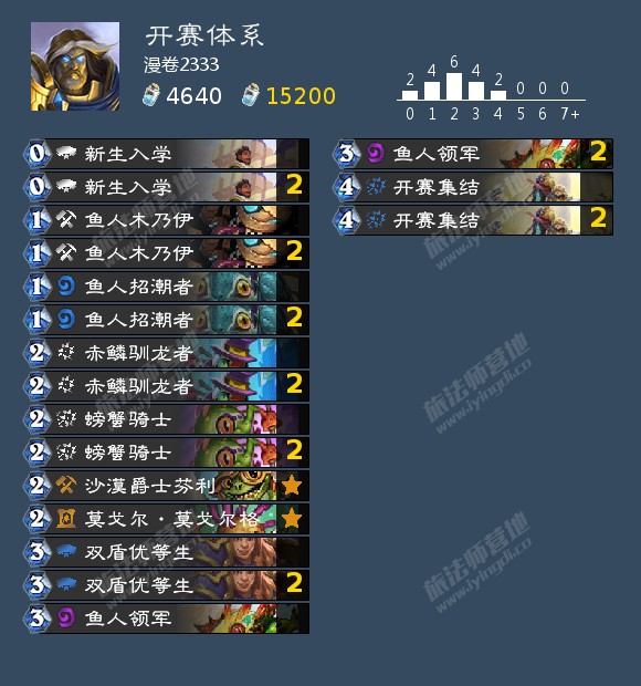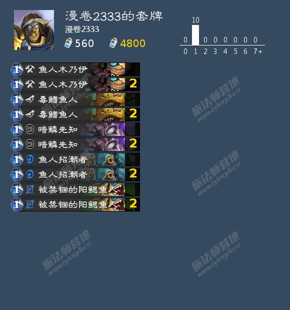 排除掉禁锢鱼人,能用的高质量鱼人其实只有鱼人木乃伊和鱼人招潮者。这样的话才四张1费呢。而113虽然质量高但是在鱼人卡组里带又太蠢了一点,不如带上万能的新生入学找高质量1费,还能配合奥露拉打法术迸发呢。
