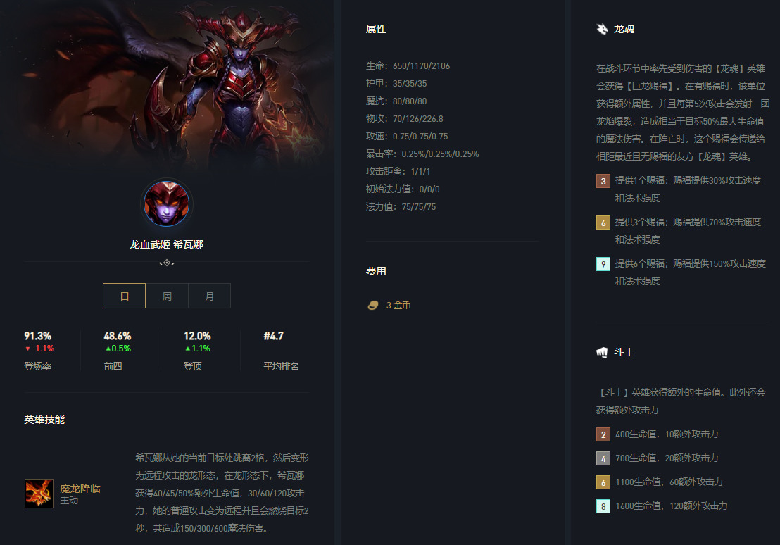 如果这时候来龙女的天选,无论是斗士还是龙魂均可拿,能凑8斗是最优质的但没有6斗+3龙魂也很强势。7级没来天选都没关系8级概率更高(60%3费天选)。
