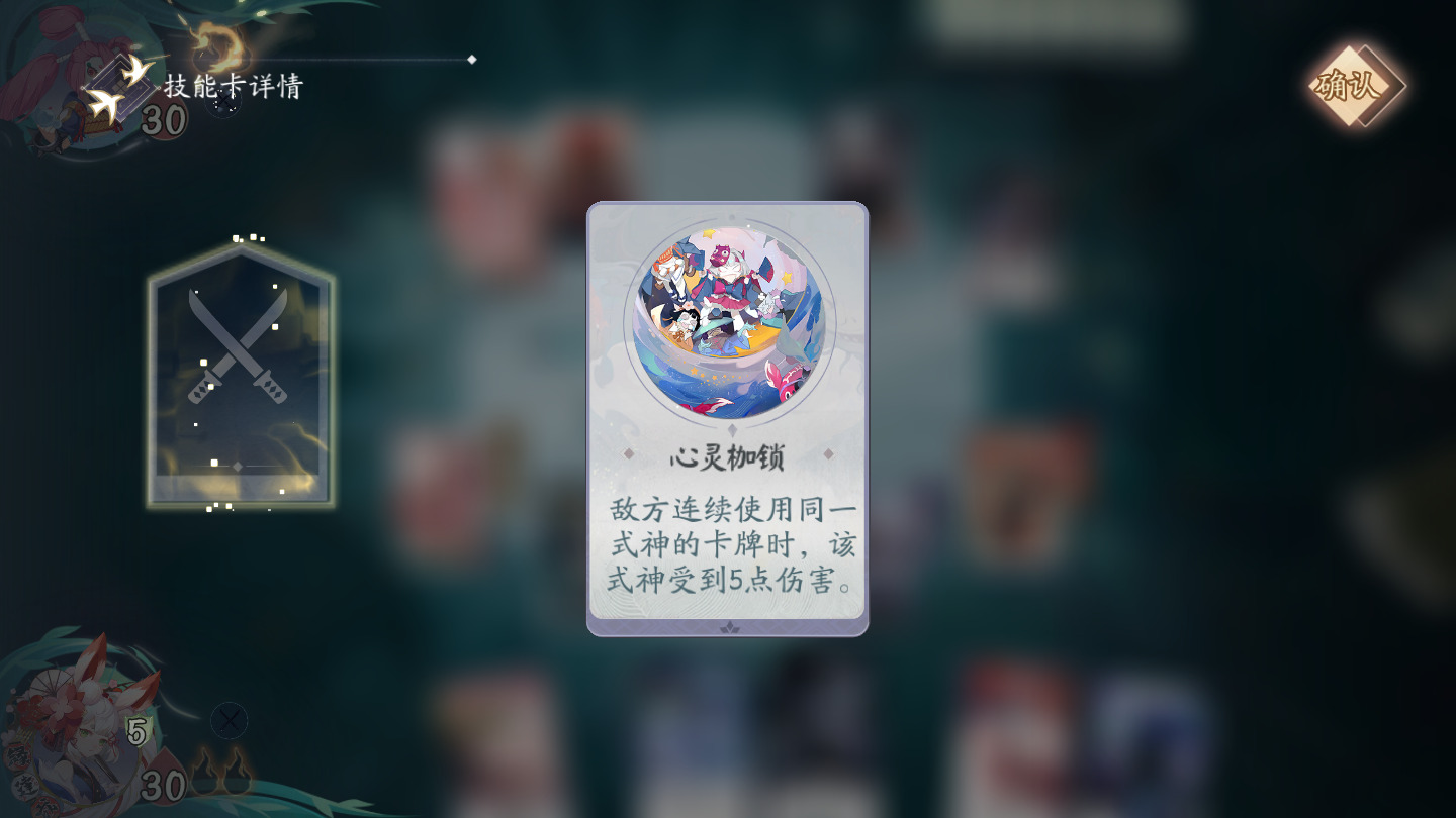 敌方连续使用同一式神的卡牌时,该式神受到5点伤害。