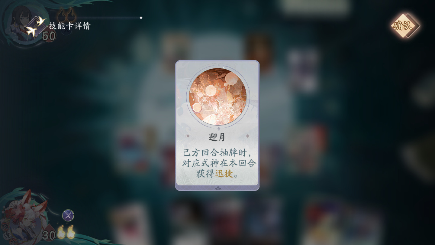 己方回合抽牌时,对应式神在本回合获得迅捷。