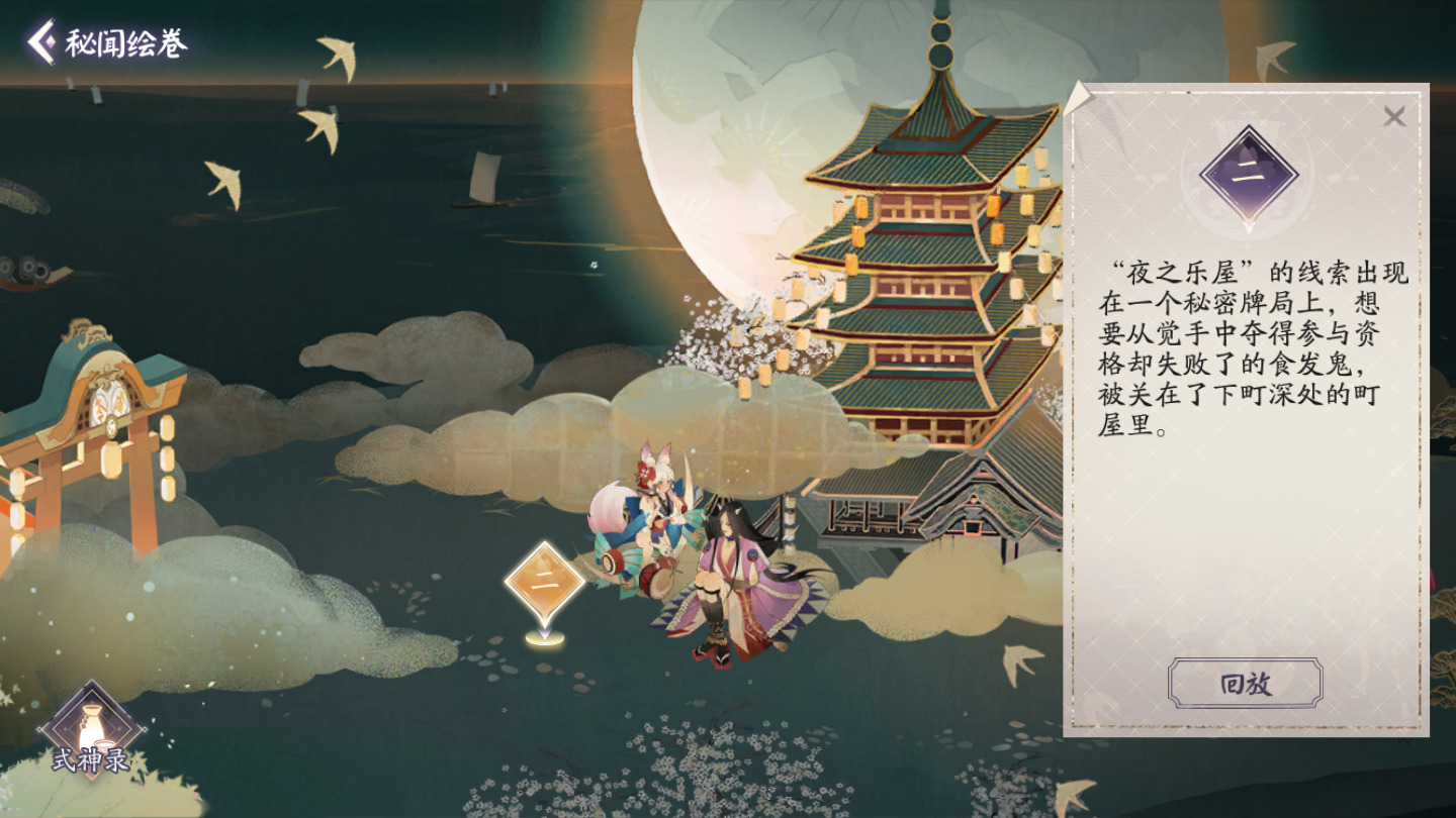 剧情的文本量不多,从追月神的视角进入剧情了解夜之乐屋的存在以及其作用,另外背景乐好评。
