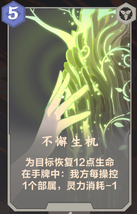 复活木唯一指定硬解,而且不是回手,直接洗回牌库,副作用是对方抽一张卡(所以面对欧皇,此卡仍然等于3费回手……)顺便一提这张卡还是打疲劳战的神器,因为可以回自己随从达到让自己牌库+1对方-1的效果,可谓风骚。建议满3。