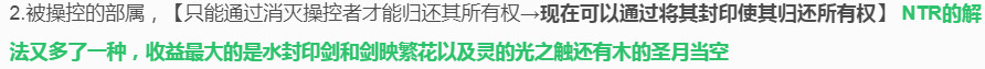 假卡四号,强烈建议满3张,超级好用,复活木标准的3费操作是6号位圣月,沉默对方同时给手牌中所有随从-1费减费非常关键,尤其在对抗快攻的时候。注意我方使用这张卡时会封印到自己的魔免随从。值得一提的是,这张卡在1月8日NTR机制修改后可以用于后手4号位针对煌离火的大招以及反忏魂,需要注意一点目前半魔烟露存在BUG,即对面半魔烟露被变型或回手的情况下,无法通过封印取回被NTR的部属。该BUG已提交,估计会在下个月更新时被和谐……