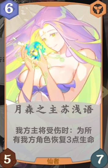 假卡2号,全游戏最优质瞬发奶。阴虽然有个2费奶12但那个是先击杀后回血的判定容易被康掉,但是这张卡基本无解,除非对面是阳而且刚好该回合在你下这张卡的格子或者后面下了解无尊。木系牌面。建议2-3张,1张也行但是会更容易被快攻抢死,因为我最初的构筑也是带一张的。