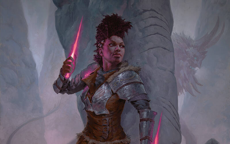 「够了!」一道声音嘶吼着,回荡在洞穴的墙壁之间。让卡娅感到惊讶并且松了一口气的是,那只生物确实放慢了动作,它的注意力被转向那个声音一会儿。那样就够了;她把所有能聚集的秘法力量导入刀刃中并向前猛攻,往低处劈砍,正好划过了怪兽的其中一条腿。