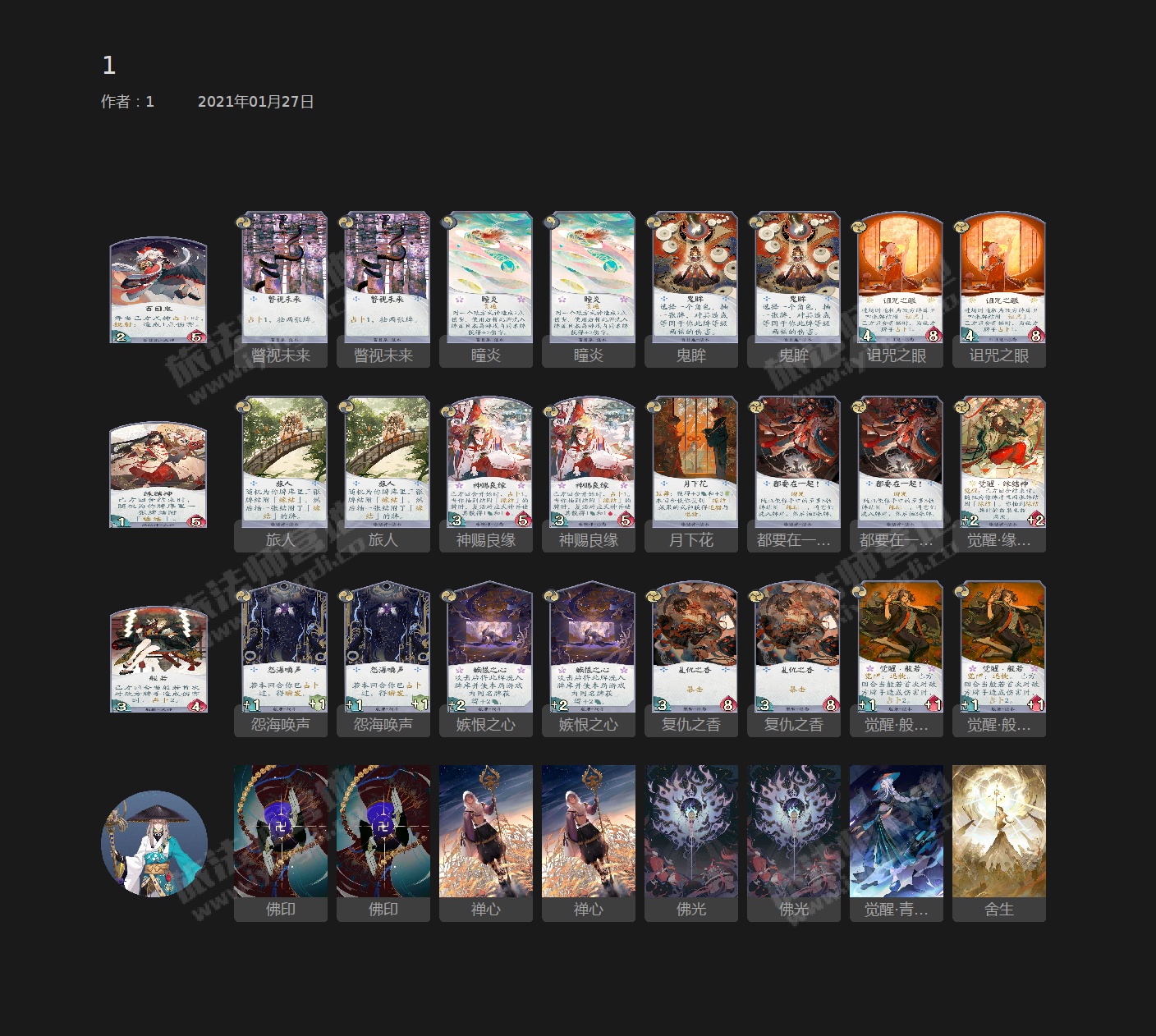 首先详细讲一下构筑层面的问题。一般来说,情缘体系的式神质量并不高,主打的是禅心和神赐良缘带来的资源差,所以这两张形态牌是最为重要的,绝对要满编。关于青坊主有的人会选择单佛印然后满编舍生或者双三勾的带法。事实上这种带法是很臃肿的,佛印的灵活度以及其作用是很难被替代的。舍生可以满编,但取代的不应该是佛印、佛光、禅心的卡位。法界唯心和觉醒也只能做到二者取其一。缘结神的单卡选择上,除了神赐良缘和旅人必须满编之外,其他牌都可以根据个人习惯做取舍。带觉醒可以提高上限,不带觉醒也足够维持卡组的正常运转。月下花可以用于解后场,也可以配合般若出击使用。有月下花中期就能有稳定打5的手段(除非倒霉抽到青坊主上)。
