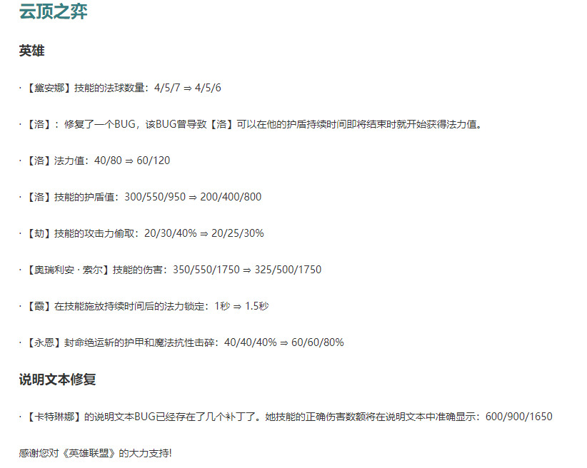 今天(1月27号)晚上5:30英雄联盟官网发布不停机维护公告。版本两大毒瘤棋子被削弱,喜大普奔。